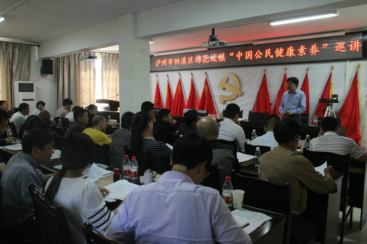 四川新闻网泸州5月8日讯(叶光成 丁友泉)5月4日,纳溪区卫计局健康教育所所长陈凯刚为棉花坡镇全体镇村干部作了一堂生动、形象的公民健康素养巡讲课,让广大镇村干部充分认识到基层公共卫生知识的重要性,人人充当主人翁,自觉加入农村公共卫生服务工作中,得到了大家普遍认可。