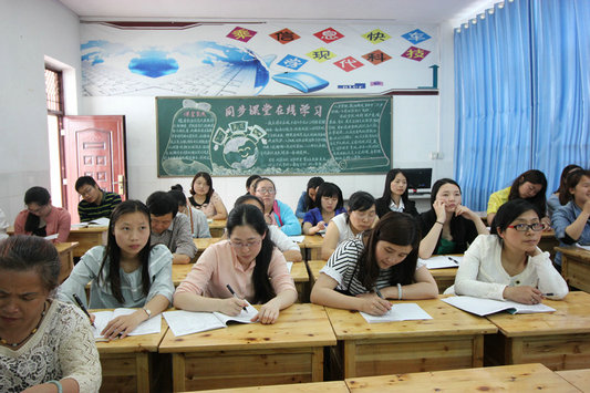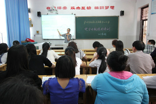 通过培训,让教师们能熟练地掌握电子白板的操作使用,让信息技术融入课堂,促进了同步课堂顺利有效开展,促进了教育均衡发展。(上马镇中心小学供图)