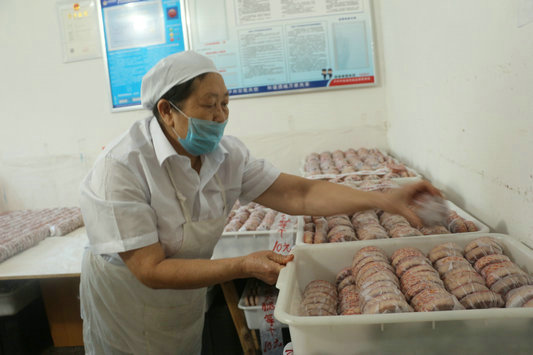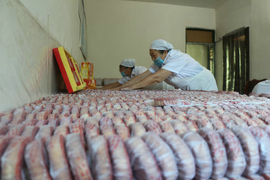 四川新闻网泸州9月13日讯(周超文 陈学强 文/图)9月13日,笔者来到泸州市纳溪区上马镇原糖果厂职工杨祚芬的月饼加工作坊里看到,不到10个人的月饼生产车间里,有的在切肉馅、有的在搅拌原子、有的在用模具压饼,而65岁的杨祚芬老人则在烤饼和摊晾,个个忙得不亦乐乎。杨祚芬告诉笔者:“虽然每年中秋节前一个月就打响了月饼销售大战,但我的月饼因为用材选料货真价实、坚持传统技艺和手工制作,今年将制作的不到8万个月饼已全部“私人定制”,虽然价格均为8—10元/个,但根本没有多余的饼子拿到市场上促销。”