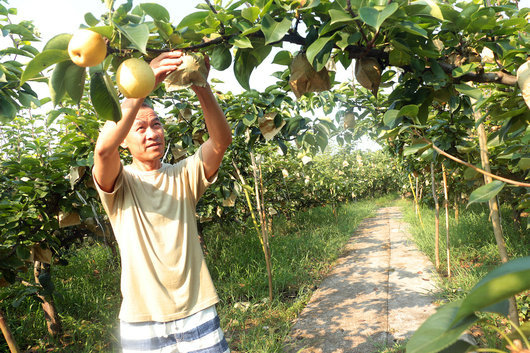 向省辉的150亩黄金梨预计产量近15万斤,由于在管理和施肥上都用豆饼追肥,并引天仙硐泉水灌溉,种出来的黄金梨肉细嫩多汁、绿色无污染,还有一股浓浓的清香味。他的黄金梨全部采用专用纸袋套袋,每个梨晶莹剔透,让人爱不释手,吃后更是回味无穷。