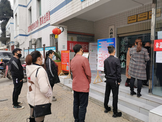 | 外出务工人员自觉间隔一米排队进行体检 |