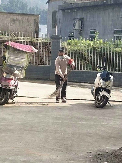| 社区干部带头打扫房前屋后卫生 |