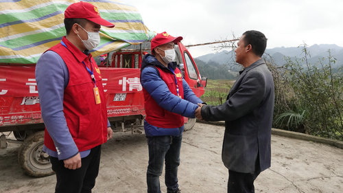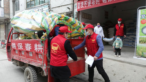 四川新闻网泸州3月6日讯(袁爱平 周雅)“感谢你们,真的太感谢了!”3月5日上午,一辆满载农用物资的三轮车开到了泸州市古蔺县观文镇民乐村六组村民王普灿家门口。待车停稳,跟在车后的“红马甲”一拥而上开始搬运,不一会儿,种子、肥料等农用物资就堆在了王普灿家堂屋里。看着堆成小山的农用物资,王普灿紧紧握住“红马甲”的手,眼眶泛红、满是感激。
