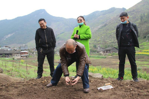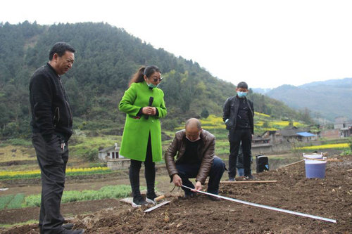“选好种是获得丰收的开始”,在太平镇煌家村红粱种植基地,高级农艺师李华中手里拿着优质糯高粱种子在给村民们讲解如何选用优质种子。在讲到培土时,李华中还拿起锄头,示范促进幼苗根系形成的正确培土方法。