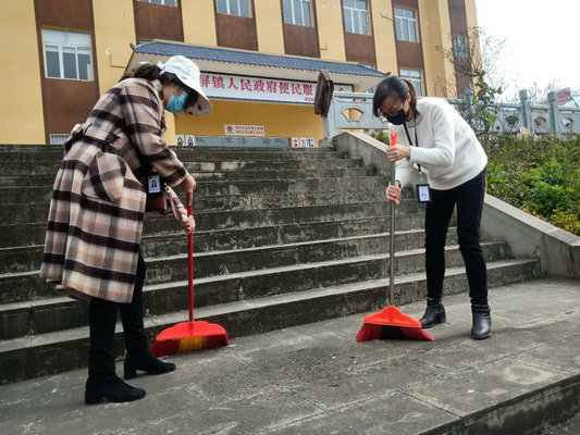 据悉,为响应四川省爱国卫生运动“周末大扫除”活动倡议, 3月13日下午,石屏镇全体干部职工率先行动,对政府办公大楼、院坝、职工宿舍等区域进行零死角大扫除和病菌消杀工作。放眼望去,政府大院内40余名干部职工各司其职,或扫地、或清运垃圾、或消毒,忙得不亦乐乎,诚然一幅“大生产”画面。
