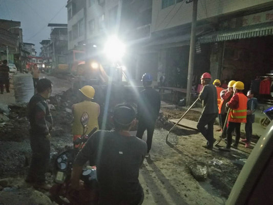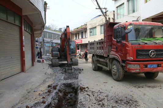 目前项目已全面开工,截至最新数据,切割路面3650米,开挖路面 3250米,二级管道铺设2900米,完成三级管道铺设480米。同时,为保障居民的出行安全,场镇已设立醒目的安全标语及安全警示牌,请过往居民注意安全。