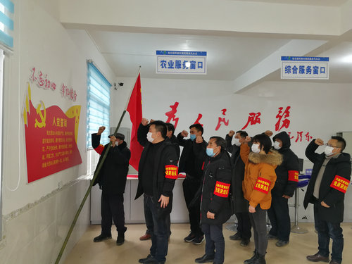 | “凤驰村“疫情防控党员突击队”队员出发前在党旗下重温入党誓词 |
