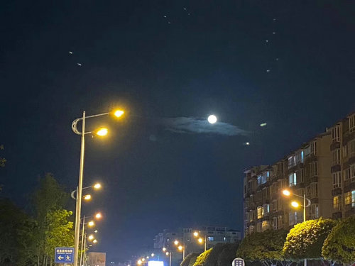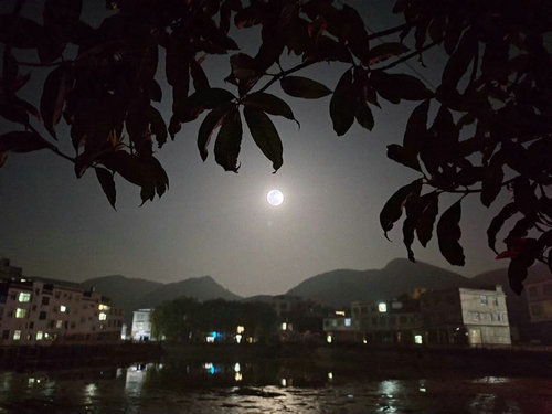 在泸州市古蔺县的夜空,“超级月亮”肉眼可见,又大又亮又圆,市民纷纷用镜头记录下这美丽的夜晚。