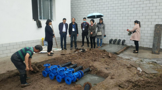 | 调研组视察白米场镇供水管网提升改造项目地 |