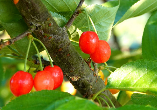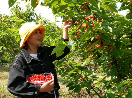 走进樱桃基地,红彤彤的樱桃在绿叶的衬托下,宛如一颗颗“红色珍珠”,在阳光的照射下,晶莹剔透,摘下尝一口,樱桃果肉细嫩,肥厚多汁,酸甜可口,硬度适中,果香浓郁诱人,令人垂涎欲滴。
