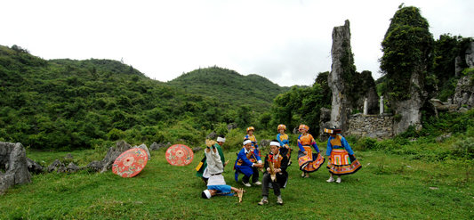 春天,绿色成茵、山花烂漫,苗族同胞们穿上节日的盛装,跳起欢快的芦笙舞蹈,迎接春天的到来。