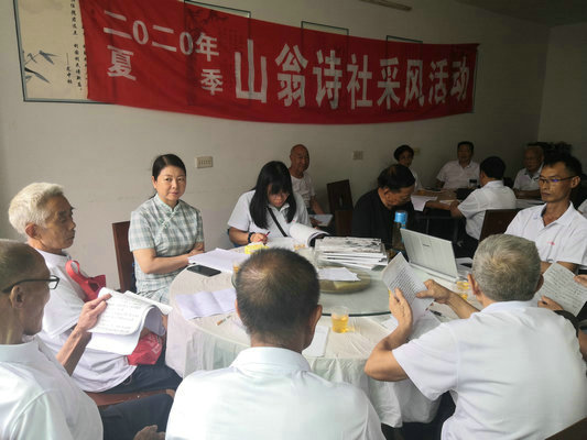 随后,一行在大旺山翁诗社联络处开展创作心得分享座谈会,一起学习泸州女诗人孙孝莲《现代人怎么写古诗》一书,分别对刊登的诗社成员作品进行点评。社员们认真听取相互之间给出的建议,总结自己的不足,为提高创作水平奠定基础。