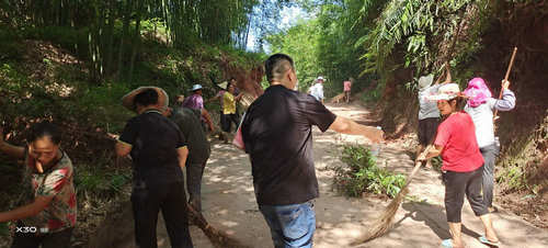 与此同时,龙井村党支部也在积极行动。以农村人居环境整治为重点,党员先锋队扛着党旗,党员群众从自家带上扫把、镰刀、铁铲、垃圾袋等,对河塘沟渠、交通要道、公共区域等进行清扫,着力为村民营造文明健康的良好环境。同时,也发动广大村民爱卫生、讲卫生、保护环境,他们的口号是“我参与、我享受,让家更干净、更美丽”。