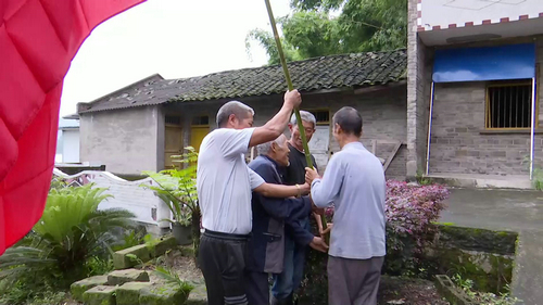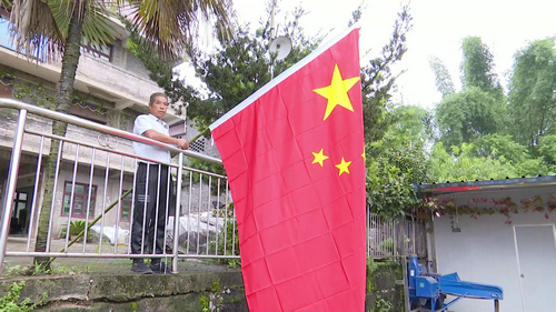 四川新闻网消息(冯岚 王浩天 杜明珉)在新中国成立71周年之际,合江县大桥镇长江村,退捕渔民郑贤春几人在小岛农家乐门口换上了崭新的五星红旗,江心小岛上飘起的“中国红”,表达着他们对祖国的生日祝福。