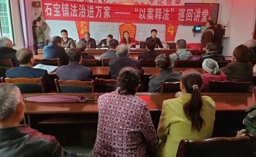 四川新闻网消息(宋畅 文/图)为认真贯彻落实省、市、县委关于脱贫攻坚的系列部署,激发“包保力量”参与法治扶贫的激情和活力,切实增强干部群众的法治意识和法治素养,更好地以法治保障和服务脱贫攻坚,结合石宝镇“以案释法”巡回讲堂活动的安排部署,石宝司法所于2020年10月18日走进石宝镇白玉村开展了“脱贫攻坚,法治同行”主题活动,全村90余名建档立卡户代表参与其中。