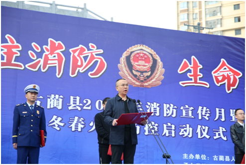 启动仪式上,古蔺县副县长、公安局局长黄炜做重要讲话,他表示,各单位要进一步增强抓好消防宣传工作的责任感和紧迫感,以“119”消防宣传月活动为契机,迅速掀起本地区、本部门、本行业系统的消防宣传工作热潮,并呼吁社会各界和广大人民群众热情踊跃参与消防安全工作,共同营造平安和谐的消防安全环境。 随后,副县长黄炜宣布“119”消防宣传月活动正式启动。