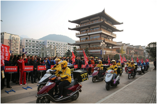 美团、饿了么外卖小哥主动担任消防宣传志愿者,活动当天外卖车上悬挂印有“关注消防、生命至上”的消防宣传旗,在古蔺城区绕城一周,营造了良好的宣传氛围。