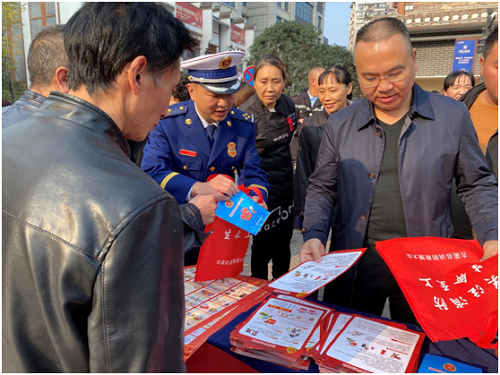 消防宣传员准备了印制着消防知识的购物袋、消防安全知识手册,消防安全常识宣传彩页等宣传资料进行发放,并向群众细致的讲解消防安全知识,通过宣传资料的发放与讲解进一步普及了消防安全常识,增强社会公众抵御火灾和自防自救能力。