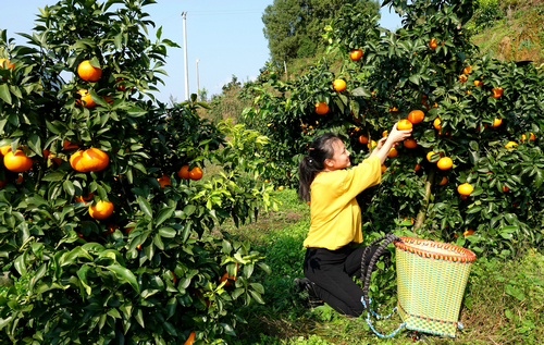 四川新闻网消息(曹雪 张文礼 记者 程海英)“它的皮很薄,一掐就能挤出汁儿来,而且无籽、无核吃着特别过瘾。”走进龙山镇白沙村爱媛种植基地,低矮的果树上挂满了果子,黄澄澄的果实色泽鲜艳,十分诱人。正在采摘的彭女士告诉记者,亲自来采摘的“果冻橙”不仅新鲜好吃,价格还比网上便宜。