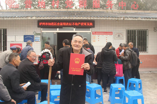 年过8旬的营地村13社农户陈德明拿到自家的不动产证高兴的合不拢嘴,“还是感谢国家政策好,我都这么大年纪了,还能领到崭新的房产证,自家的房子得到白纸黑字的确认,以后也不怕打房子的官司!”