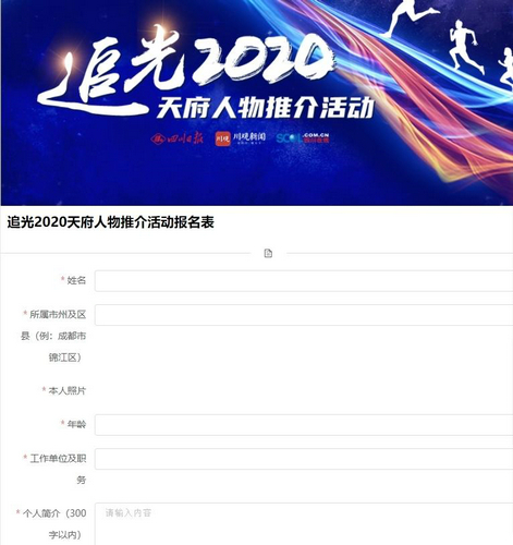 候选人通过自荐与推荐相结合的方式产生,全省183个县级融媒体中心将积极推荐候选人,本人也可经所在单位或所在地的居委会、村委会等确认后,进行自荐。本次推介活动旨在更好地传播和发挥榜样力量。活动将在川观新闻客户端开设专题,展示人物事迹;1月底启动网络投票,结合公众投票和专家意见,推介出“追光2020”天府人物等。详细情况请关注荔枝红手机台,咨询电话:18982412345。