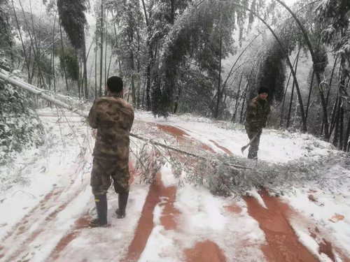 王熙说:“我们林区的主要树种是楠竹,前几天下大雪,很多楠竹被压垮在路上了,对防火通道造成了一定的影响,为了保障防火通道的畅通,我们就组织了力量将被压垮的楠竹进行了清除。”