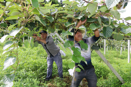 | 余洪正在给猕猴桃园蔬果 |