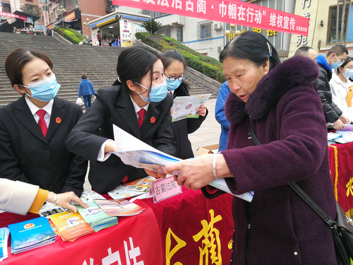 四川新闻网消息(胡小芹 张丽娜)为增强广大妇女的维权意识,在第111个“三八”国际劳动妇女节来临之际,3月5日上午9时,古蔺县人民法院的女法官们到古蔺县大梯步广场开展了“3·8”维权周法律集中宣传活动。