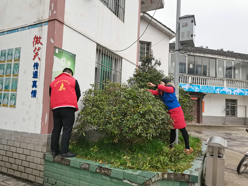 志愿者们早早聚集在富强村活动室门口,按活动计划将志愿者分成清理队、除草队、栽种队3支队伍。大家根据各自的分工,拿起扫把、铁锹、锄头等工具在指定的地点,开展活动……有的负责清理杂草和垃圾,有的负责修剪树枝,有的负责栽种花草。