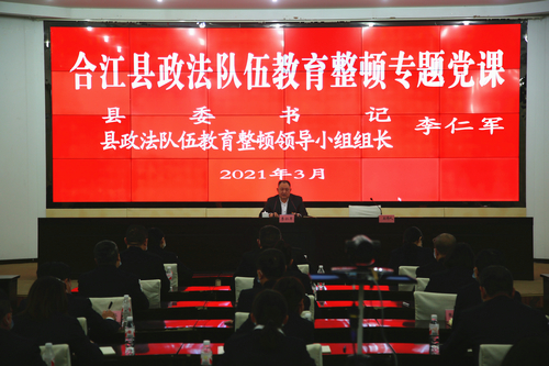 四川新闻网消息(唐菱霞 黄建伟 杜明珉)3月22日下午,合江县政法队伍教育整顿政治轮训班举办,县委书记、县政法队伍教育整顿领导小组组长李仁军为全县政法干警讲授专题党课。