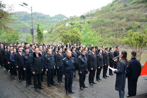 全体党员同志在红军长征四渡赤水太平渡口纪念碑下重温入党誓词,追忆初心、践行使命,增强干警为人民服务的光荣感、责任感和使命感。“我志愿加入中国共产党,拥护党的纲领,遵守党的章程,履行党员义务……”一句句发自肺腑的忠诚誓言,表达了干警矢志不渝跟党走的决心和永葆忠诚的坚定信念。