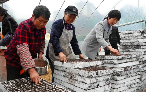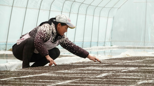 “我在这个基地上班的工资是120元一天,育苗、移栽、除草、收割都有人指导。”大棚内,农户们正在根据要求有序的装盘、撒种、施肥。村民胡思会笑着说,一季高粱种下来,勤快点能挣六千多元。