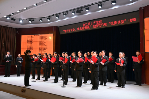 四川新闻网消息(朱慧萍 文/图)为准确把握“学史明理、学史增信、学史崇德、学史力行”的目标要求,促进全院干警思想道德水平的提高,建设一支绝对忠诚纯洁可靠的高素质政法队伍,3月26日,合江县人民法院将队伍教育整顿工作学习教育环节工作安排与“道德讲堂”活动相结合,围绕政治教育、党史教育、英模教育、警示教育,结合“6+N”环节,开展“学百年党史、铸忠诚警魂”主题党日活动暨道德讲堂活动。
