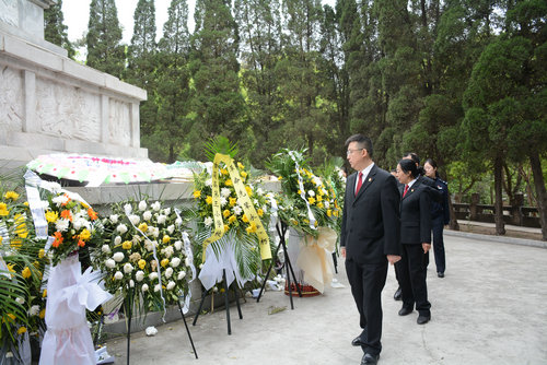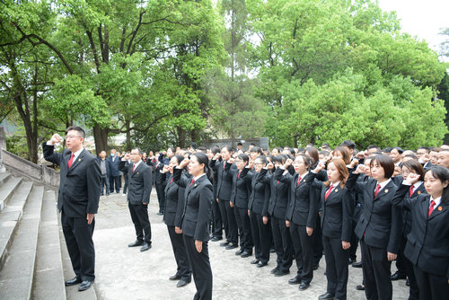 在庄严的烈士陵园纪念碑前,干警们向英雄烈士敬献花篮、默哀,表达对革命先烈们的缅怀之情和深切怀念,并重温入党誓词。