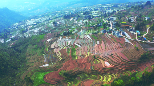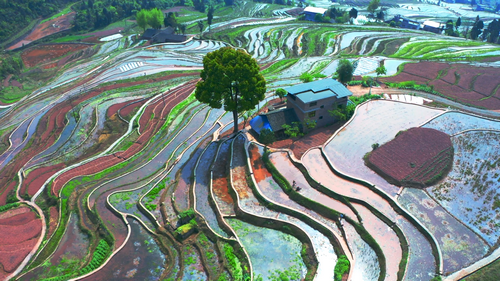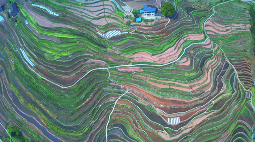 四川新闻网消息(曹雪)青山为屏,绿地为幕,田埂为脉。在泸州市古蔺县德耀镇凤凰村,水田里的庄稼汉开始一天的劳作,机器的轰鸣声不绝于耳。层层叠叠的梯田和葱葱郁郁的山林交相辉映,一幅动人的乡野春耕画卷徐徐展开。