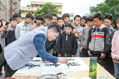 今天,当这些革命老区的孩子们第一次与他们心目中的书画摄影艺术大枷们在校园里不期而遇时,兴奋与好奇、惊叹与羡慕、睿智与上进等等,都在他们稚嫩的脸庞一一展现了出来。艺术家们走进孩子们的课堂里,面对面与孩子讲解书法艺术的魅力,传授绘画艺术的奥秘,漫谈摄影艺术的光影魔力。孩子们一张张纯真的童颜和纯朴的笑脸,感动着每一位艺术家,让艺术们饱含深情地将对这一群山区孩子的爱怜,融于一点一滴的笔墨中,融化在一张张丰富多彩的画卷里。