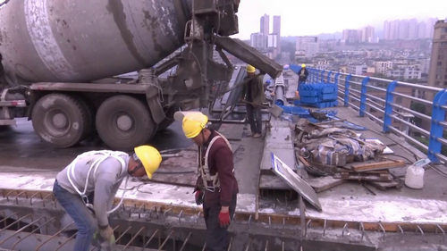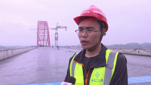 中交二公局合江长江公路大桥技术负责人魏海龙说:“现在防水引桥做完了,还差主桥有668米没做,做完了之后,就是整个桥面拉通铺设沥青,沥青铺完后,最后两道工序就是安装伸缩缝以及安装路灯,这两个工作做完整个大桥的建设工作就基本结束了。”