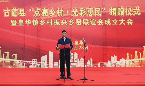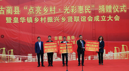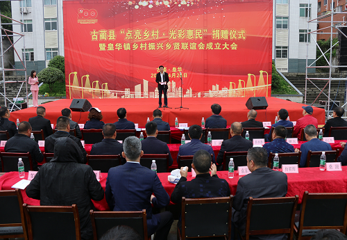会前,皇华镇举行了古蔺县“点亮乡村 光彩惠民”捐赠仪式,广东省中山市万普照明科技有限公司和上海铭氚投资管理有限公司为改善古蔺乡村人居环境,方便村民平安出行,共建和谐社会,分别向古蔺县和皇华镇金星村、利河村捐赠路灯共计700余盏。