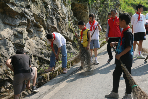 5月2日,箭竹苗族乡团结村50余名中小学生纷纷行动起来,带上扫帚、铲子、塑料桶等清洁工具来到龙挨洞路段进行环境卫生清洁。年龄较小的学生在大人的带领下先在前面清扫杂物,而年龄稍大的在后面负责垃圾清运。学生们认真清除路上的有色垃圾、残枝腐叶,打扫着每一个角落,不放过一丝一毫垃圾,充分展现了箭竹青年学生不怕苦、不怕累、不嫌脏,朝气蓬勃的精神风貌。经过近三个小时的清洁活动,使龙挨洞环境卫生得到有效改善。