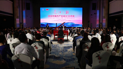 乐团的江边演奏只是序曲,5月4日晚,在合江县江语兴酒店,乐团还举行庆祝中国共产党成立100周年“长江之歌”主题室内音乐会。指挥家傅人长精心选配了《长江之歌》《浏阳河》等诗情画意的山河赞歌,以及《唱支山歌给党听》《山丹丹花开红艳艳》等激励奋进的经典民曲,还有《土耳其进行曲》《月亮河》等脍炙人口的世界名曲,让整场音乐会用深情经典的旋律回顾党的奋斗历程,用圣洁美好的音乐致敬党的光辉成就。