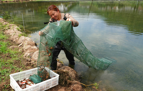现在捞起来这几笼虾,是用来招呼几位县城里慕名而来的游客的。游客们还在水田捞虾捞得不亦乐乎,张兴彩已经端着龙虾回到自己开办的农家乐,开始给这桌游客准备今天的午饭。张兴彩说,自家不仅养了清水虾,还喂了活水鱼、土鸡和兔子,平时有一两桌人,到了节假日,客人多到忙都忙不过来。