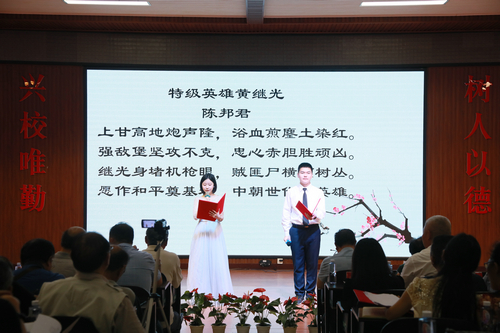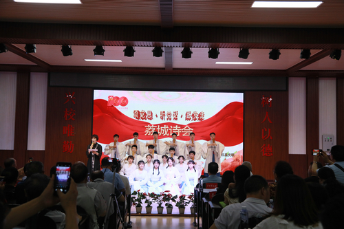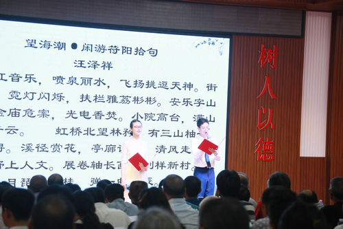 荔城诗会在学生们的红歌合唱中拉开序幕。随后,学生们与合江诗联会会员先后上台,朗诵了70余首诗词作品,或娓娓道来,或慷慨激昂,深情抒发家国情怀,表达对党的无限热爱和对伟大祖国的美好祝福。整场诗会内容丰富,创意新颖,舞蹈、歌曲、器乐演奏穿插一组组诗歌吟诵,给现场观众带来一场视听的饕餮盛宴。