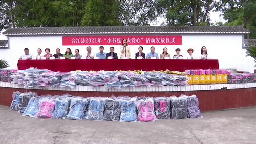 合江县九支镇顶子小学学生黄钰说:“我们这儿非常贫穷,交通也很不方便,这些叔叔阿姨能够给我们送书包,我非常感谢他们。我现在好好学习,走出大山,长大以后有更好的未来。”