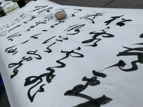 活动中,100米长的宣纸一字展开,来自县书法家协会以及其它协会的会员和学生代表等,现场进行书法创作,内容围绕伟人诗词等,献礼建党一百周年。