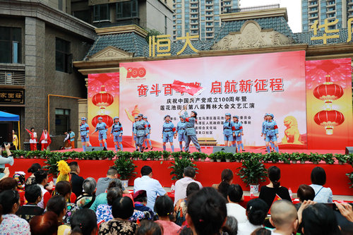 四川新闻网消息(姚艾青 唐千越 张明剑 记者 程海英)长风激浪谱新篇,艺海扬帆歌满船。莲花朵朵群芳舞,征程万里再起航。6月17日下午,泸州市龙马潭区莲花池街道庆祝中国共产党成立100周年暨第八届舞林大会文艺汇演举行,来自街道6个社区选送的11个舞蹈同台竞技,轮番上演、竞相媲美。党史知识问答穿插其间,500余名干部群众共享文化大餐,共迎党的百年华诞。