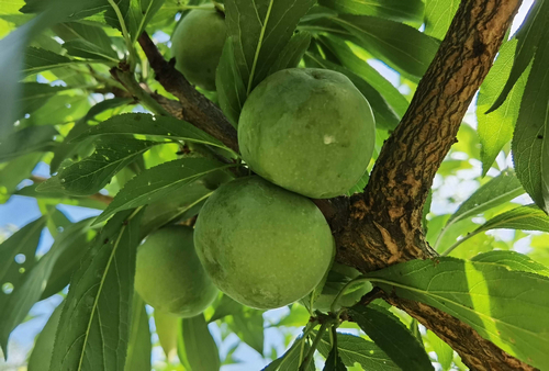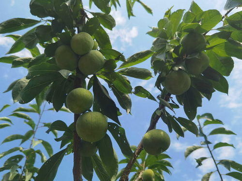 穿过一片比人还高的玉米地,邓先发家的青脆李基地便映入眼帘。一颗颗鸡蛋般大小的青脆李悬挂在枝头,压弯了树枝,散发着浓郁的果香,游客穿行树间,忙着采摘新鲜的青脆李。虽然还未到青脆李采摘的最佳时期,但有几颗树上挂着的青脆李已所剩无几,显然,不少顾客已闻香而来,提前尝鲜。