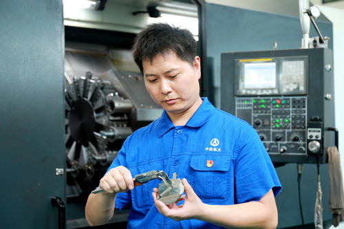 | 川南航天能源科技有限公司青年突击队队员张在平正在对产品质量进行检验 |