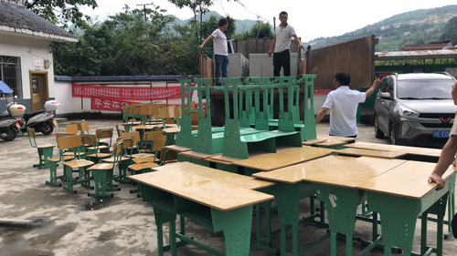 四川新闻网消息(刘欢 记者 程海英)6月29日,一辆大货车满载180套桌椅、8台电子白板、5台投影仪等价值10余万元的物资进入了古蔺县石屏镇长龙小学、扎山小学、石屏镇中心小学校。在老师的指挥下,高年级的同学率先当起了义务搬运工,先把这些桌椅一张一张地送向低年级的教室……