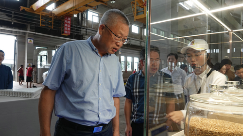 王小荣一行先后前往黄金坝酿造车间、天宝洞储酒基地、天宝峰16万吨储酒库区、露天陶坛酒库等地,了解企业生产、存储、运输全过程,并讨论分析白酒行业发展前景、市场潜力和经济效益,对区域内白酒产业发展规划、存在问题等进行深入交流。