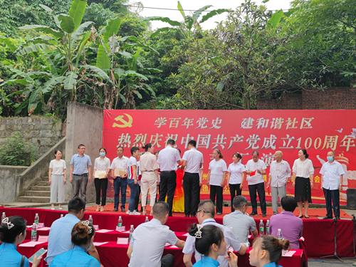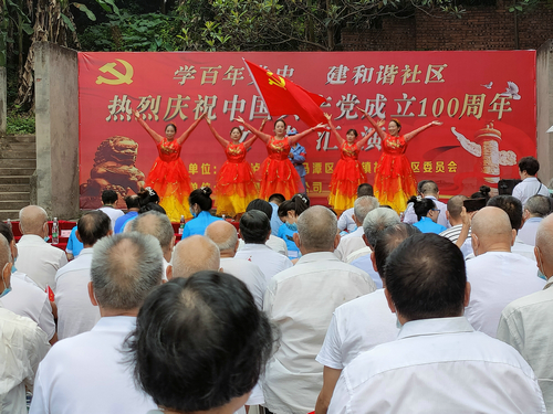 四川新闻网消息(胡国苹 记者 程海英)6月21日,泸州市龙马潭区胡市镇胡市社区组织120余名党员开展“学百年党史 建和谐社区”庆祝中国共产党成立100周年文艺汇演活动,7个共建单位参加演出。